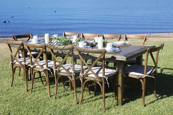 We offer beautiful rustic farm tables. Other tables for rental includes 6’ and 8’ buffet tables, 36” round, 48” round, 60” round, 72” round, pedestal/ bistro and serpentine tables. We offer black or white Samsonite folding chairs, white padded folding chairs along with silver chiavari chairs. You can choose to have us to only deliver and pick up the tables and chairs or we can provide setup and removal for an additional fee.